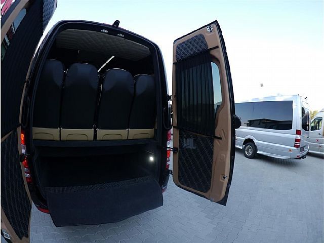 Ihre Fahrgäste reisen in bequemen Halbledersitzen, die mit einem 3-Punktgurt ausgestattet sind, mit Düsenbelüftung, Servicesets, Hutablage über den Sitzen und Heizkonvektoren auf beiden Seiten. Alle Doppelsitze sind seitlich ausziehbar und auf einem Podest angebracht. Das Navigationssystem inklusive Rückfahrkamera, der Tempomat, das Radio mit CD- und DVD-Funktion und Flachbildschirm sowie Mikrofon verschaffen Ihnen ein komfortables Reise- und Fahrerlebnis. Vor allem während langer Fahrten im Sommer werden Sie dankbar für den eingebauten Kühlschrank und die Dach- und Fahrerklimaanlage sein. Der gesamte Innenraum ist verkleidet und wird mit LEDs beleuchtet. Die großen Panoramascheiben (innen und außen) prägen den eleganten Stil.